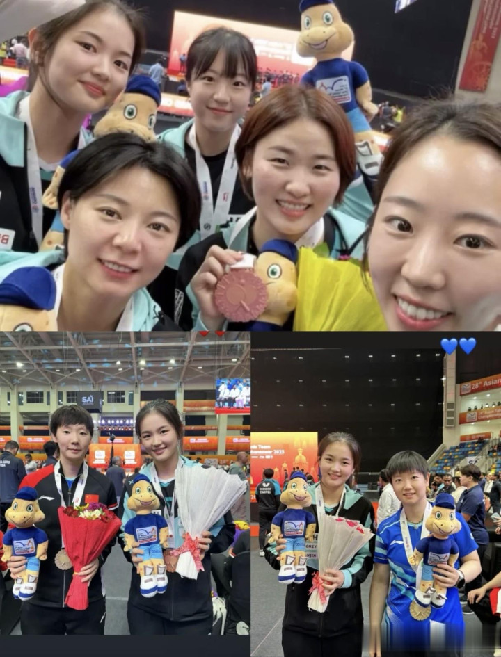韩国这次半决赛输给了国乒拿到了铜牌,金娜英在社交平台上晒出了和孙颖莎,王曼昱的合照,看来输给国乒,韩国也是心服口服,随后申裕斌也晒出了和孙颖莎的合照。